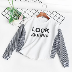 V1 2018春装新款韩版圆领上衣印花宽松套头长袖拼接显瘦厚卫衣女