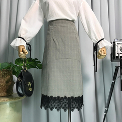 H@06夏季新款百搭拼接显瘦韩版中长裙纹时尚蕾丝气质半身裙女