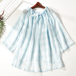 2018早秋新品格子系带领上衣宽松雪纺衫2157