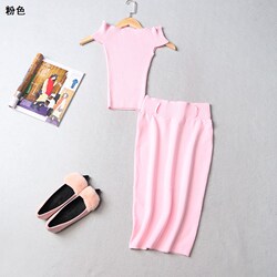 213630 臻实惠女装秋一字领套头无袖上衣+半身裙套装