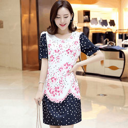 酷伽夏季新品韩版套头圆领短袖波点典雅印花连衣裙16290