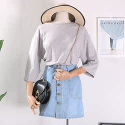 【反季清】2017夏季新款 宽松版休闲套头衫 露肩短袖T恤衫女