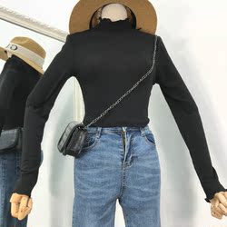 【秋款】D@16夏季新款潮流时尚百搭韩版修身半高领T恤女潮