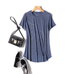 夏季新款T恤衫动物印花套头上衣女 不对称显瘦弹力衫打底衫Pc5