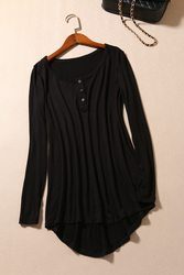 【反季清】女套头打底衫T恤前短后长椭圆下摆外翻卷边袖口森女范