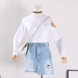 H@09夏季款时尚简约纯色修身露肩百搭长袖T恤上衣女