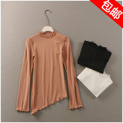 H@18新款时尚潮流百搭简约半高立领修身打底上衣女纯色长袖T恤