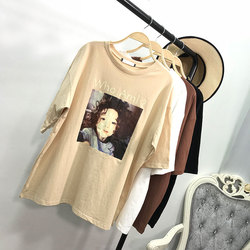 【白菜】H@22 2018秋季韩版圆领短袖人物字母印花显瘦套头T恤