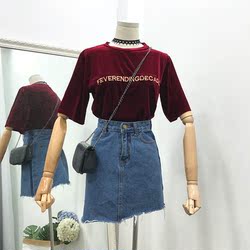 【白菜】H@3 夏季韩版圆领短袖字母印花显瘦上衣百搭套头T恤