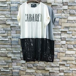 夏季2018新款女装圆领字母下摆亮片拼接加大码短袖T恤上衣8@A-8-4