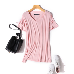 H@02夏季新款简约纯色V领修身显瘦T恤甜美百搭短袖针织衫上衣女
