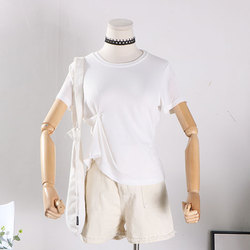 新款T恤衫袖口系带套头上衣女 鸡心领宽松显瘦弹力衫打底衫夏Rb5