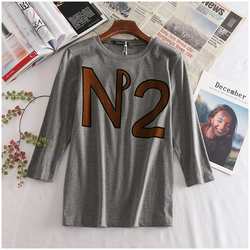 【白菜】D@12 2018秋季新款韩版女装数字印花圆领长袖T恤