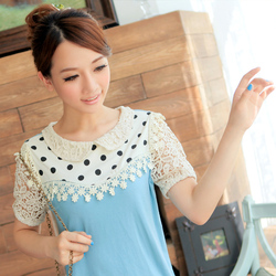 【白菜】H@15 夏季新款圆领短袖印花波点宽松显瘦套头上衣韩版T恤