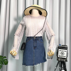 【白菜】F@6 2018夏季新品韩版宽松百搭复古纯色长袖上衣女
