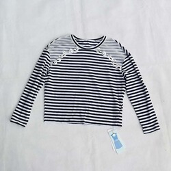 午后YC2017春专柜正品条纹肩绣花拚接百搭圆领打底T恤AS5718107