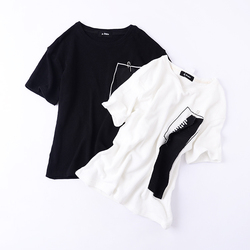 H@06宽松开叉百搭上衣夏季新款韩版圆领套头纯色T恤女