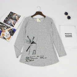 W31@学生新款通勤韩版修身圆领印花T恤女长袖打底衫春夏季t恤