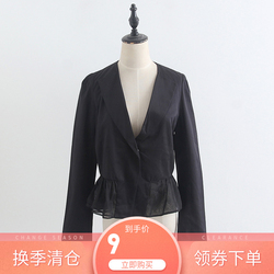 2018春夏黑色单排扣翻领荷叶边西装外套