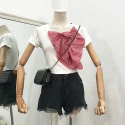 G@16夏季新款甜美韩版学院风圆领蝴蝶结短袖女