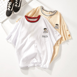 2018早春新款纯棉T恤衫宽松短袖小衫圆领图案狗衫显瘦热卖潮