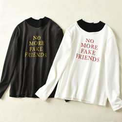 韩版秋季新款女装字母印花时尚长袖上衣拼接圆领百搭T恤 KY916
