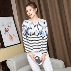 酷伽韩版时尚宽松显瘦圆领长袖印花拼接潮流个性气质雪纺衫7596