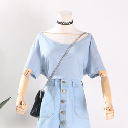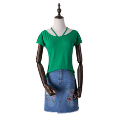 【5件包邮】!2017夏装新款时尚纯色百搭短袖挂脖露背T恤