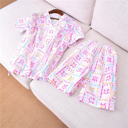 5.26X635新款夏季女士休闲套装宽松舒适印花百搭短袖v领上衣+裤子