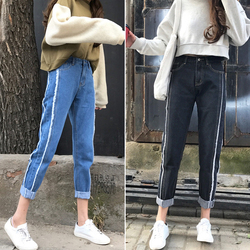 2017春夏新款女装韩版bf宽松直筒牛仔裤女学生显瘦毛边阔腿长裤潮