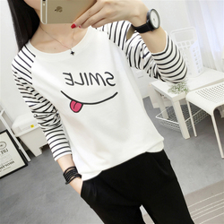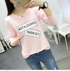 小衫T恤女长袖宽松韩版短款体桖血衫秋季2017百搭啼休闲修身丅桖