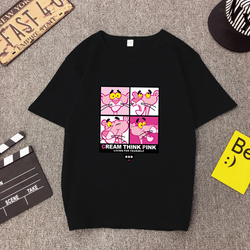 夏季新款打底衫潮卡通粉红豹潮牌短袖T恤闺蜜情侣装男女学生班服
