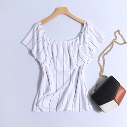 春夏新品性感荷叶边一字领露肩显瘦沙滩女T恤衫D35-4