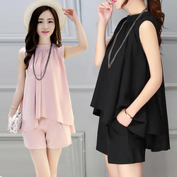 夏季时尚两件套2018新款潮韩版大码女装气质夏装雪纺上衣短裤套装