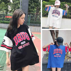 美式嘻哈街舞棒球衣 原宿风字母宽松大码中长款短袖T恤连衣裙女夏