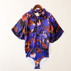 13309春夏新款欧美风女装V领时尚OL印花系带连体内裤时装T恤12月4