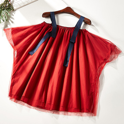 2018夏装新款吊带露肩网纱上衣女洋气一字领娃娃衫1280