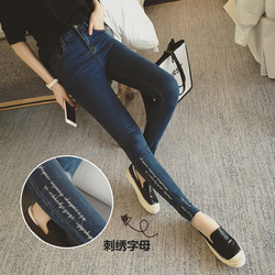 批发牛仔裤女新款秋装韩版显瘦高腰小脚长裤铅笔黑色九分裤学生潮
