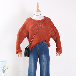 J@18秋冬季2018慵懒宽松针织衫百搭韩版不规则破洞休闲上衣女