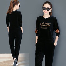 妈妈秋季套装40-50岁长袖金丝绒中老年女装宽松运动服两件套新款