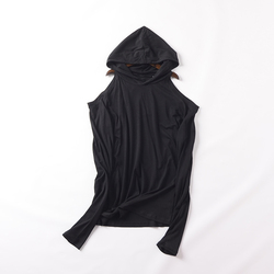 【包邮】J@15韩版秋季纯色连帽套头长袖上衣百搭宽松露肩打底衫