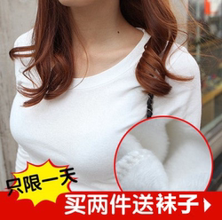 2016冬季女装白色长袖打底衫加绒加厚t桖女韩版修身纯色大码t恤