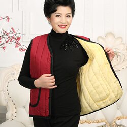 中老年人秋冬夹棉加绒加厚男保暖背心女开衫内衣外穿大码热能马甲