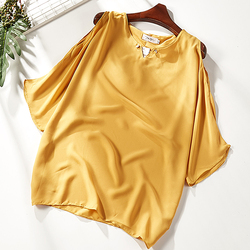 2018早秋新款纯色露肩圆领宽松雪纺衫1418