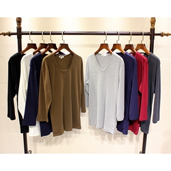O6-J612圆V领八分袖弹力春秋螺纹纯色打底净衫款套头上衣搭潮T恤