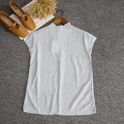 T3-2 2018春装新款立领短袖上衣女后拉链修身针织衫 39962