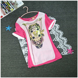 秋冬新品大码女妈妈装长袖假两件拼接撞色亮片针织弹力T恤D18-2