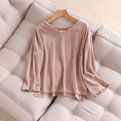 秋新款T恤衫几何镂空套头上衣女麂皮绒宽松显瘦弹力衫圆领打底衫M