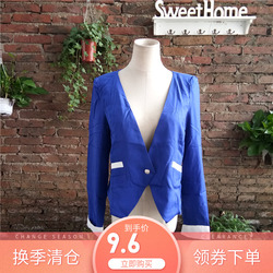 春秋装修身短款时尚甜美波浪领纯色长袖系扣小西服优雅白领女外套