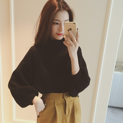 灯笼袖毛衣女2018秋冬新款韩版高领泡泡打底针织衫宽松套头蝙蝠衫